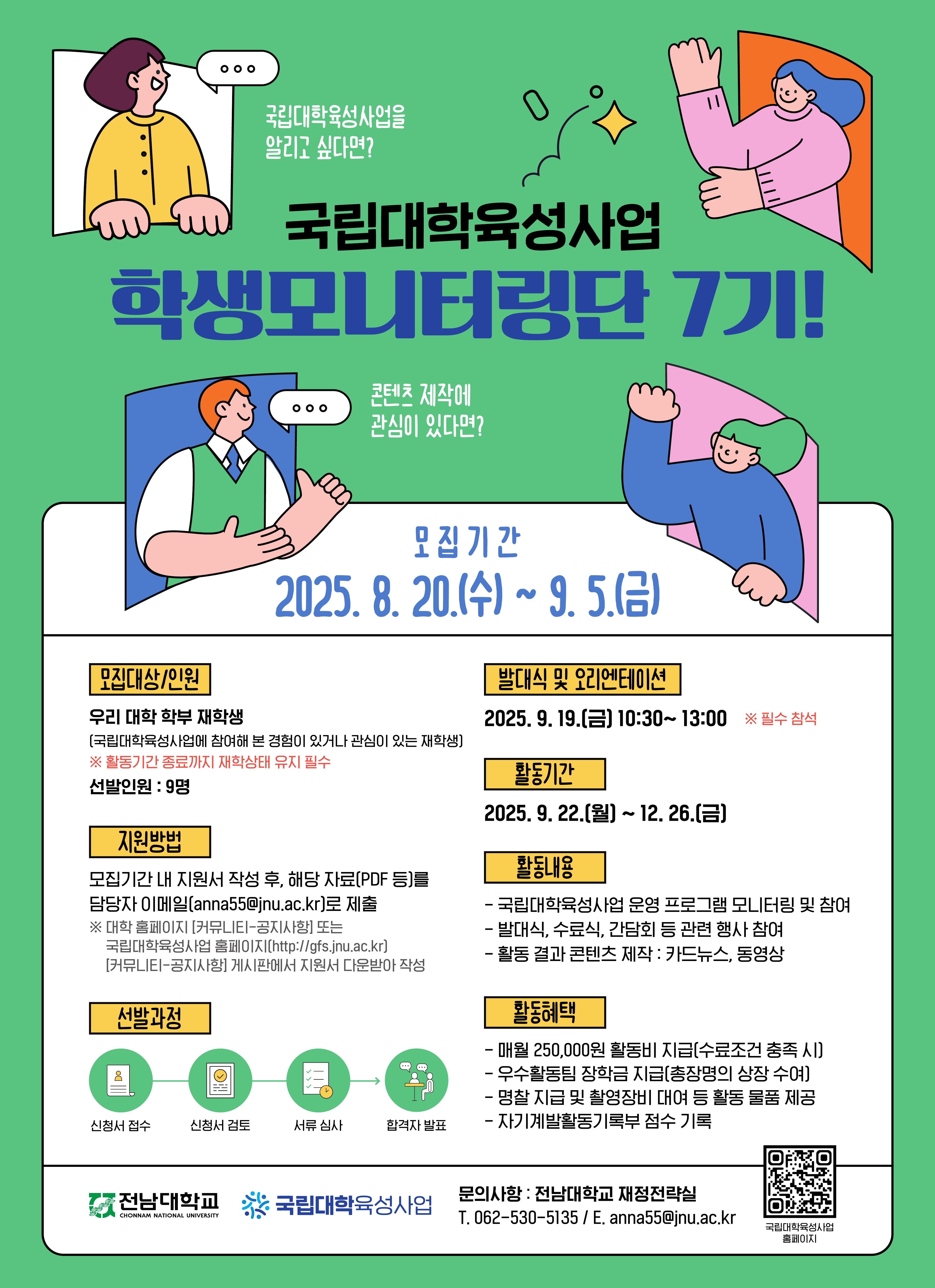 학생 여러분의 손으로 국립대학육성사업의 미래를 만들어갈 '학생모니터링단 7기'를 모집합니다!